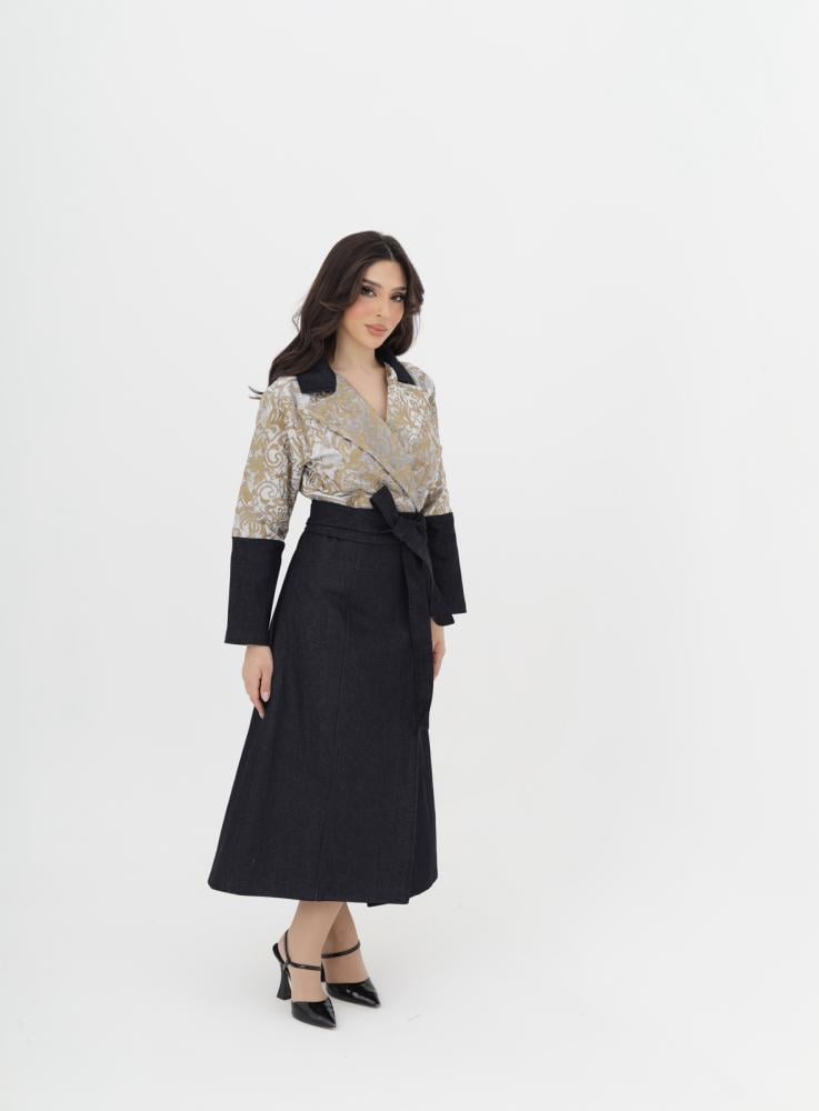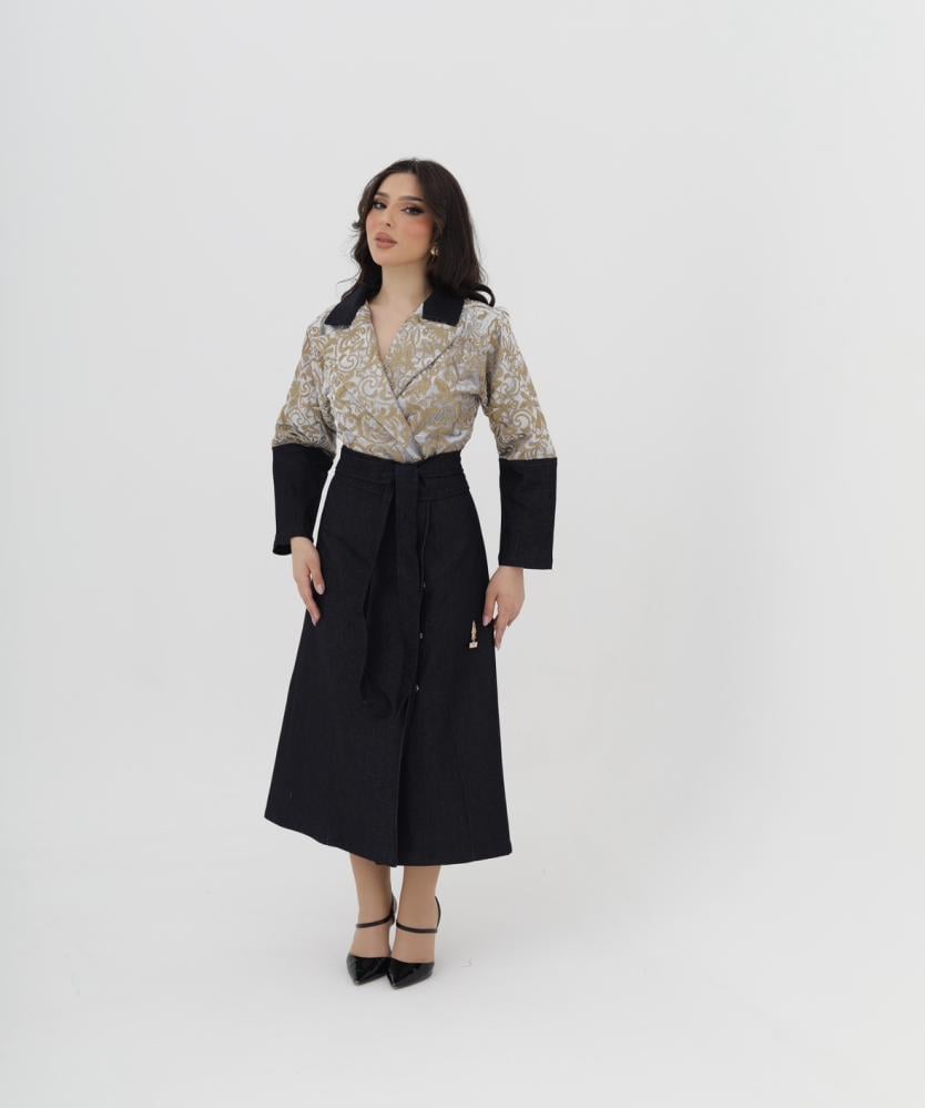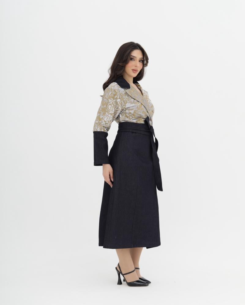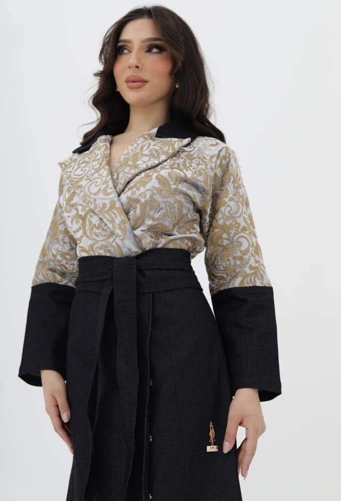 فستان من قماش الجنز .، و قطيفة مطرزة