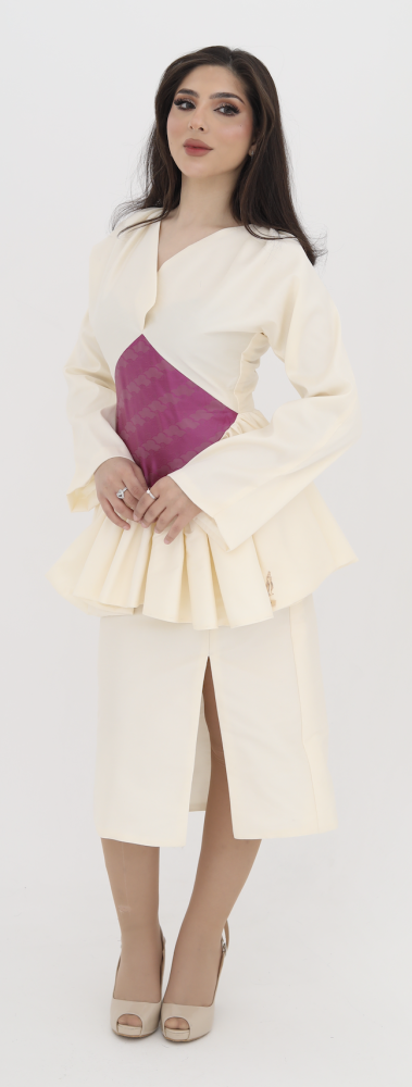 تنورة وبلوزة من قماش تفتة شانتون مع إضافة قماش ساري في جزء من البلوزة